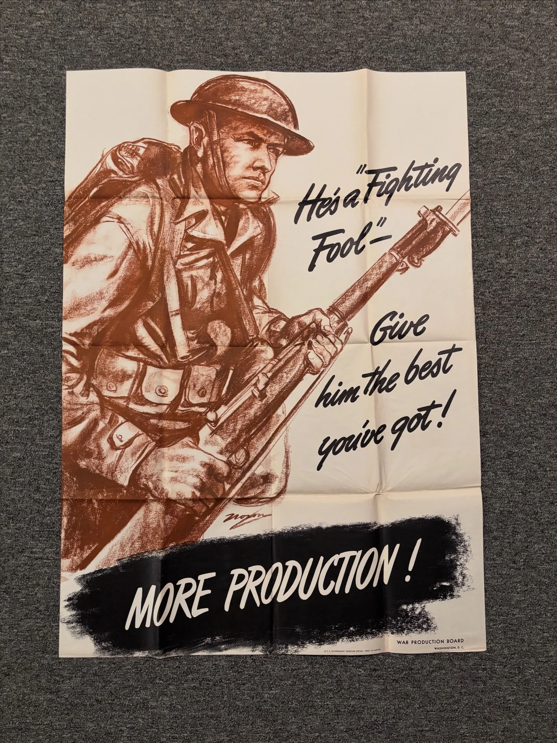 The first ever factory poster put out by the war production board in WWII. For posters, this one is where it all began for American production when it came to government printed posters. A true classic.