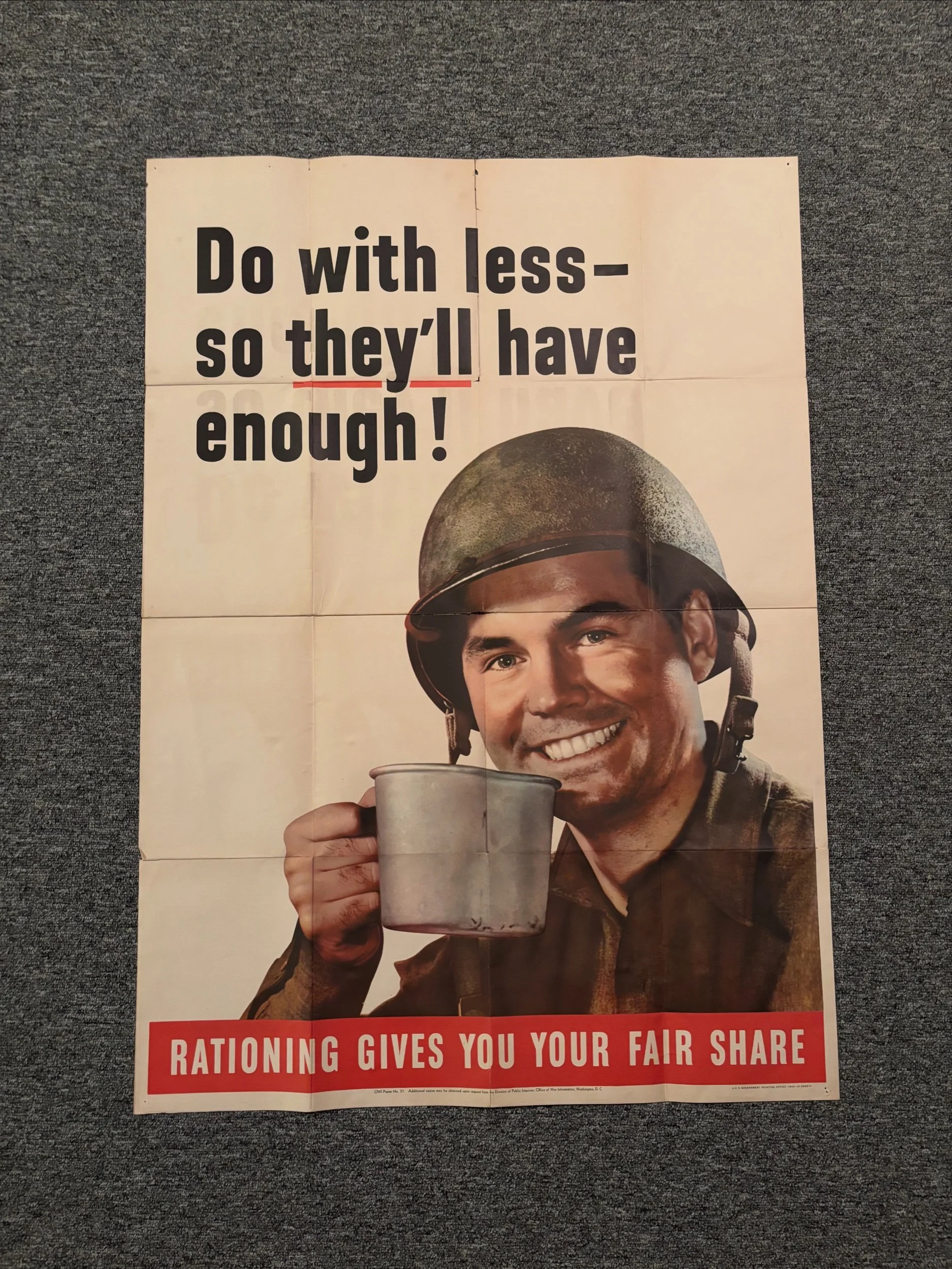 WWII United Nations poster featuring all allied nations going into battle by land, sea and air. One of the greatest graphics of any war poster.