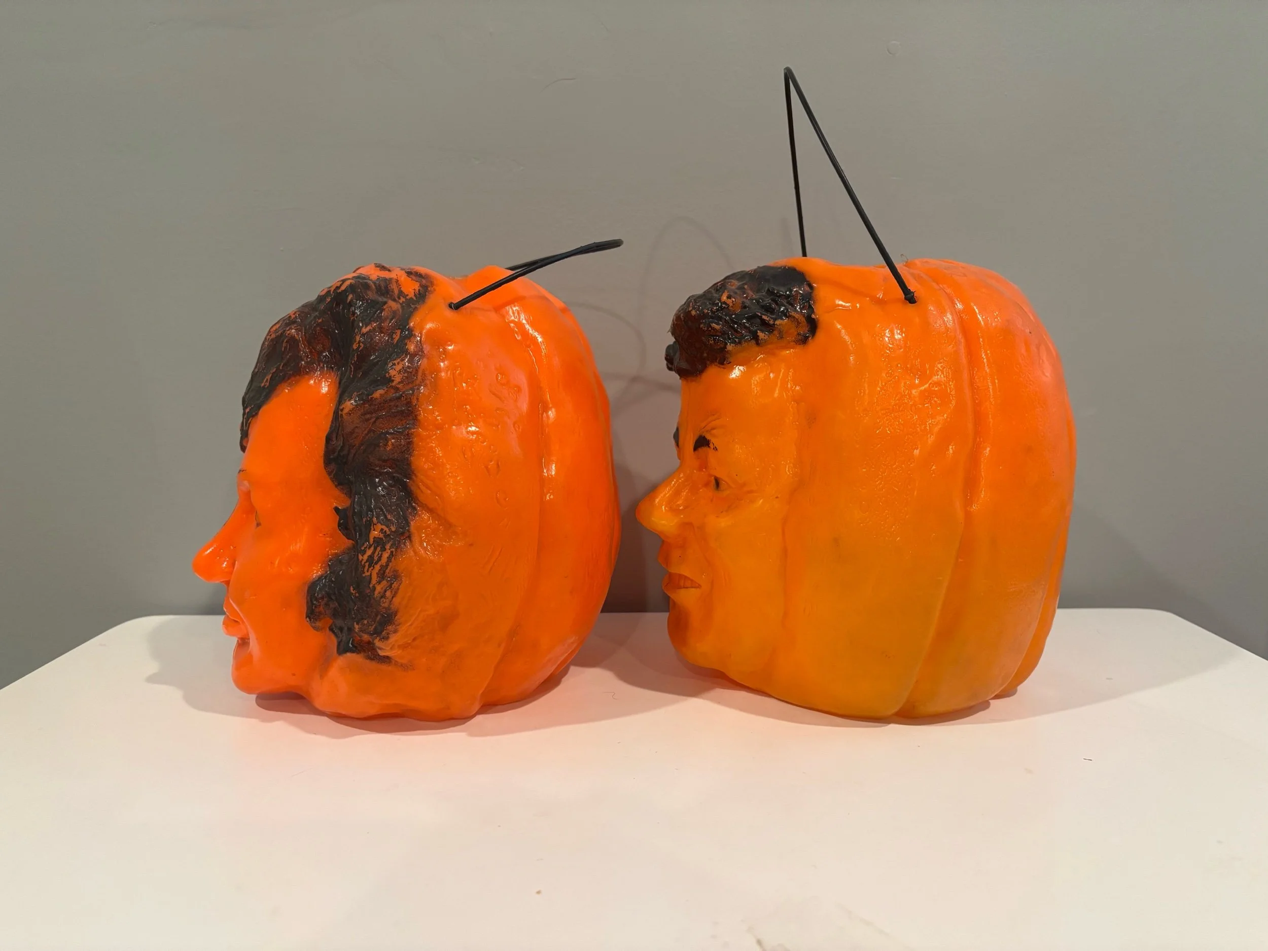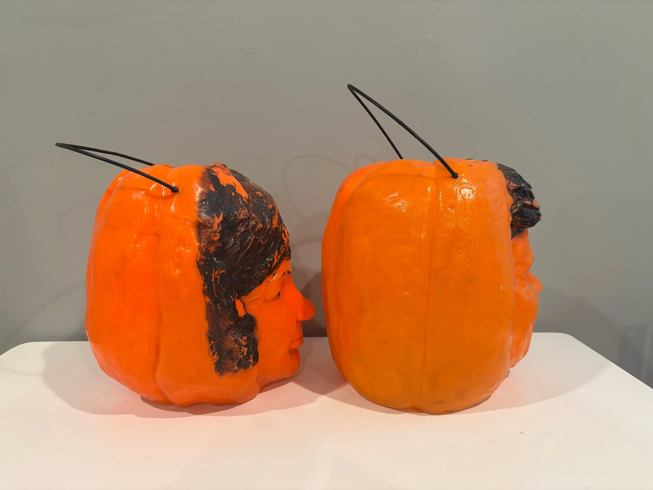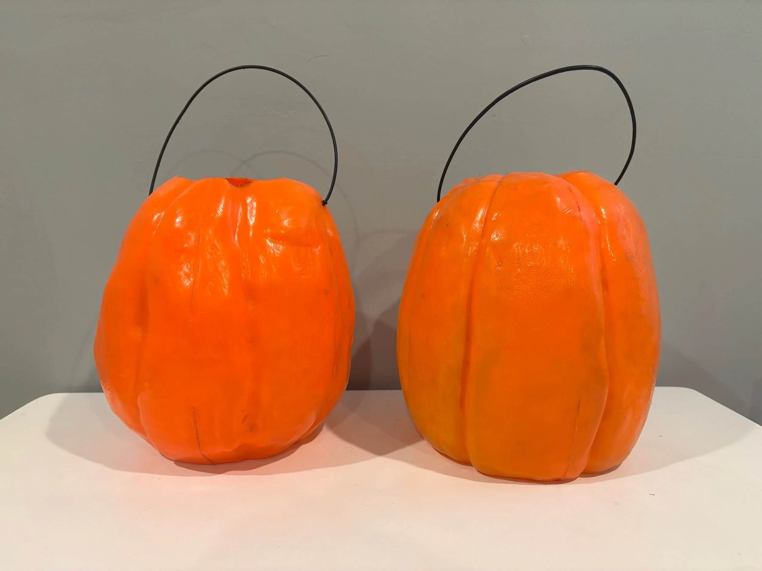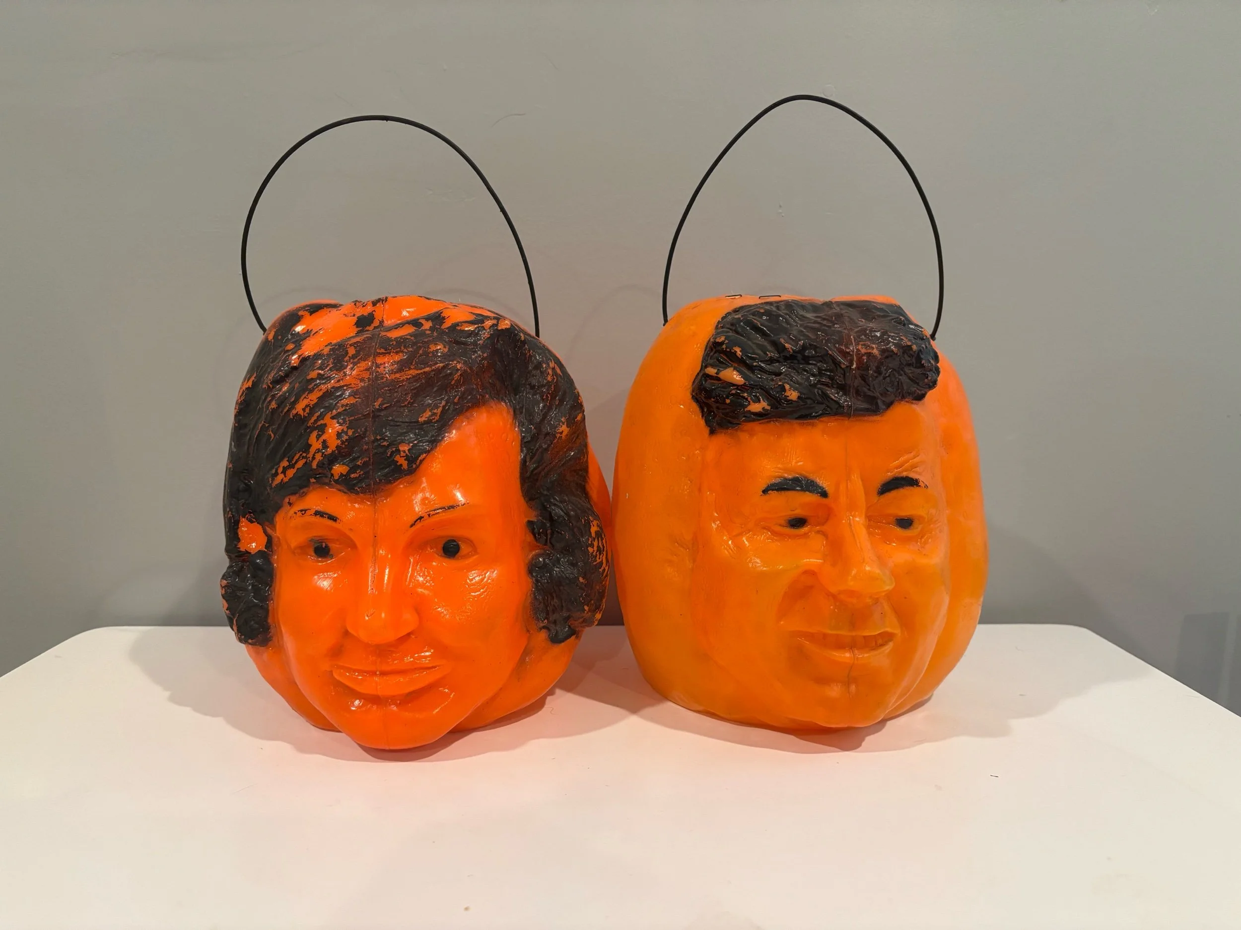Scarce molded plastic pumpkin buckets with handles. These were made in very small quantities for the 1960 campaign around Halloween. There are 4 known examples of the JFK bucket, and only 2 known Jackie examples. Finding a set is nearly impossible even for the most seasoned political collector. One of the most unusual Kennedy campaign items ever made.