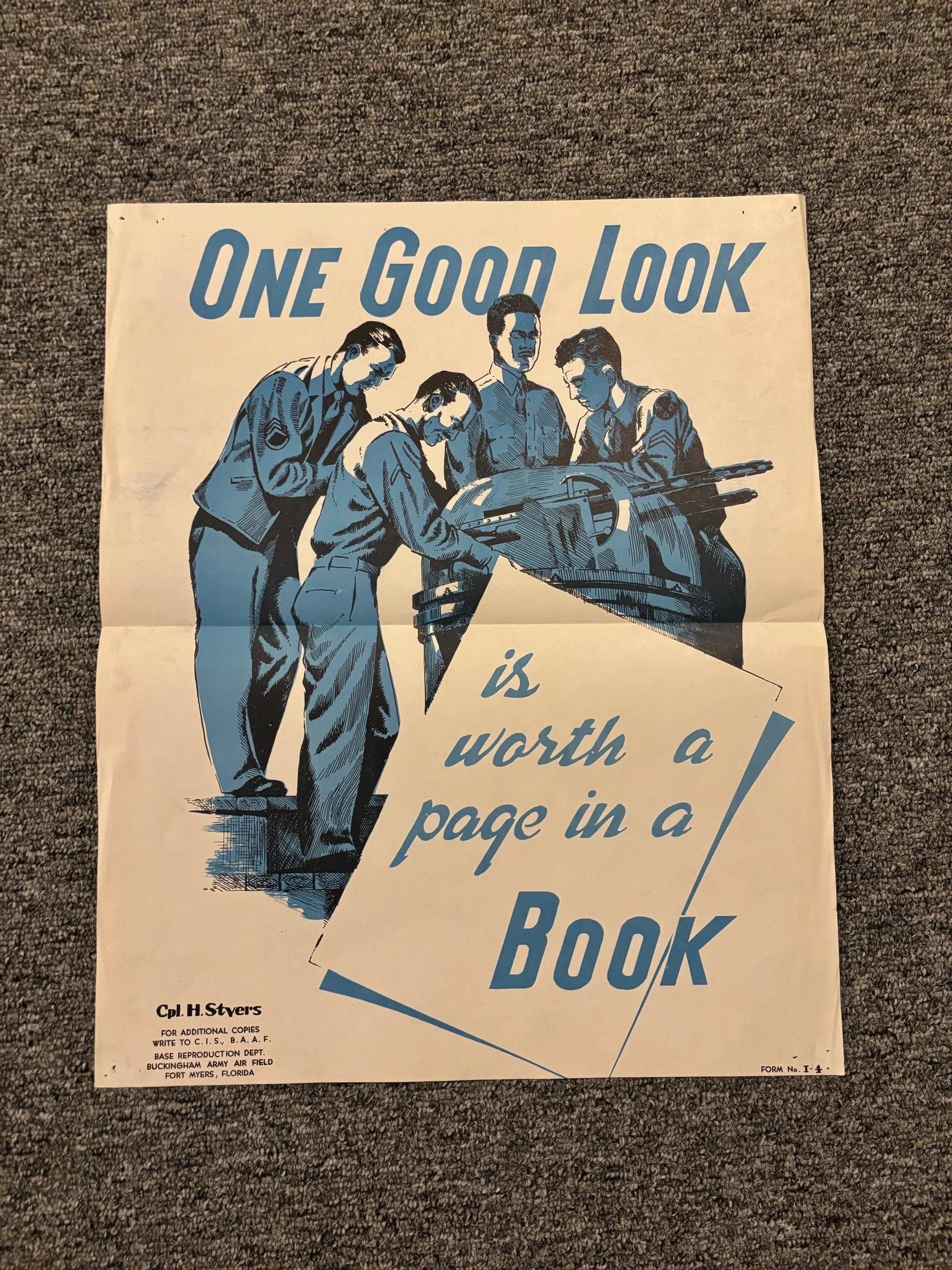 Multi-racial never before seen WWII poster from Buckingham Army Airfield in Fort Myers, FL. This particular poster shows the importance of proper care and matinence on artillery. Cant find another one in our searches.